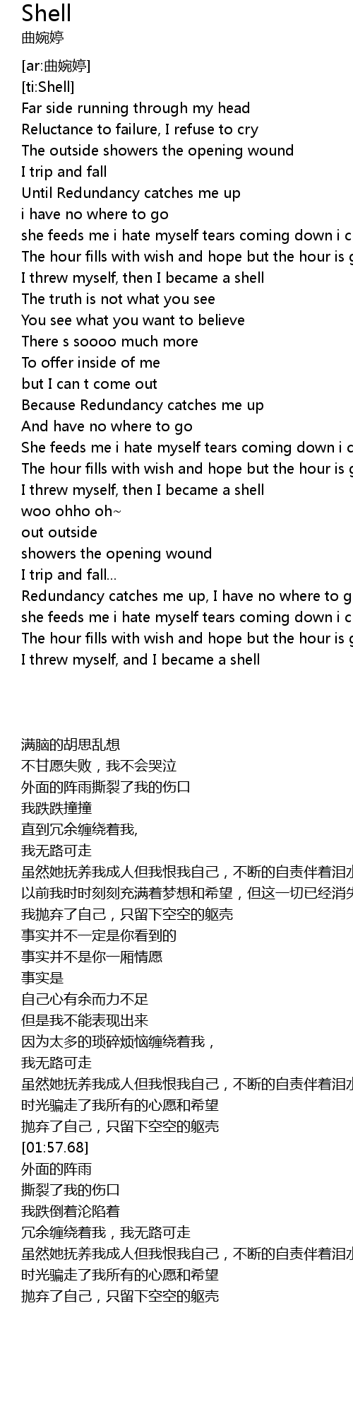 | [02:54.17] | 抛弃了自己,只留下空空的躯壳 |