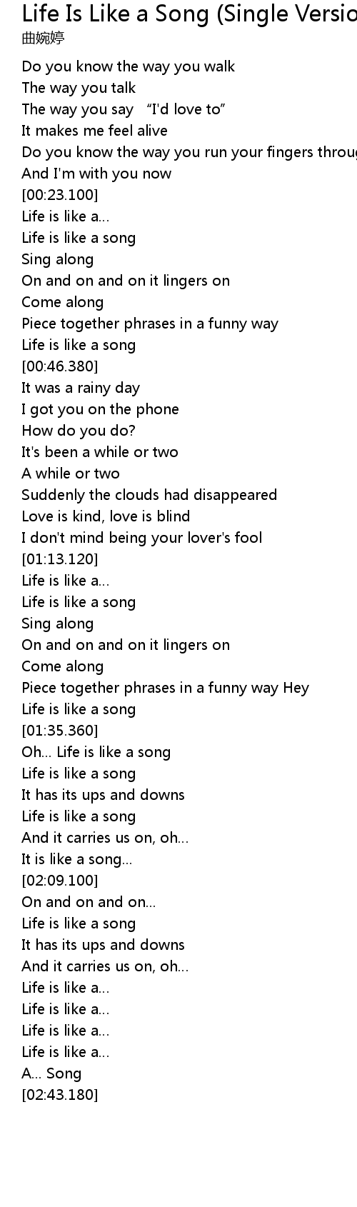 | [00:43.500] | Life is like a song |