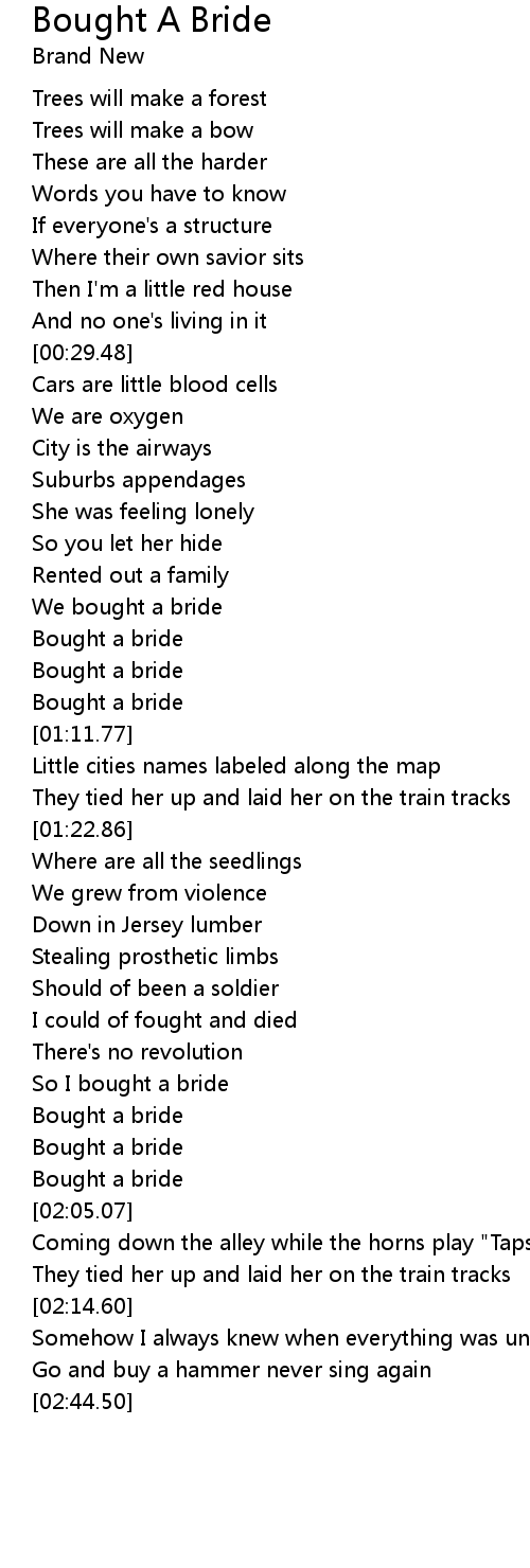 | [01:50.94] | Bought a bride |