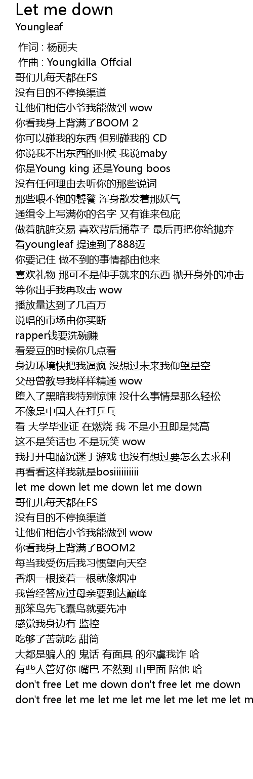 | [02:41.409] | don' t free Let me down don' t free let me down |
