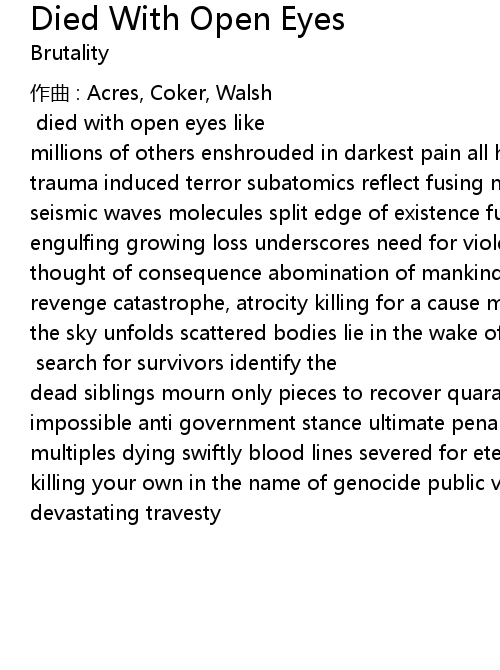 | 歌曲 | Died With Open Eyes |