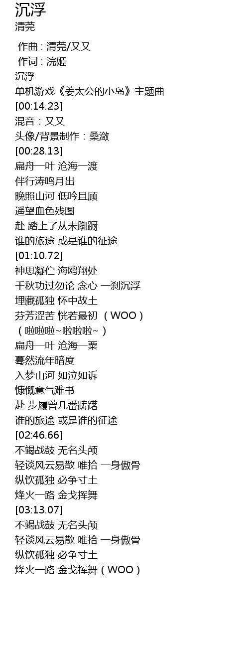 | [00:10.42] | 沉浮 |