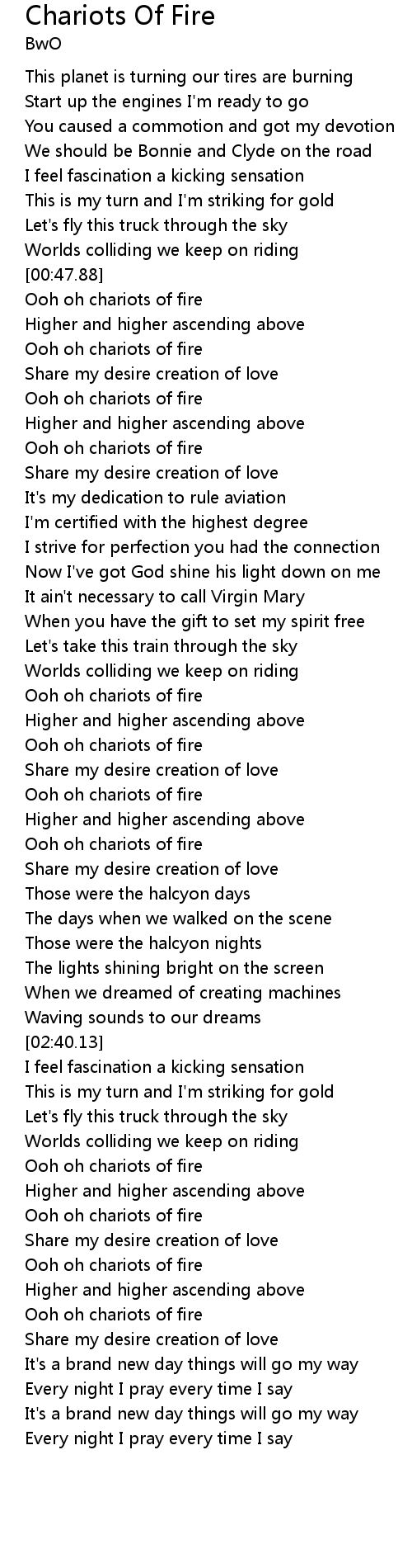 Ooh oh chariots of fire |