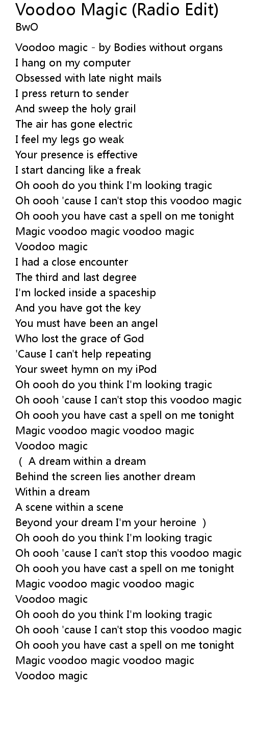 | [01:11.12] | Magic voodoo magic voodoo magic |