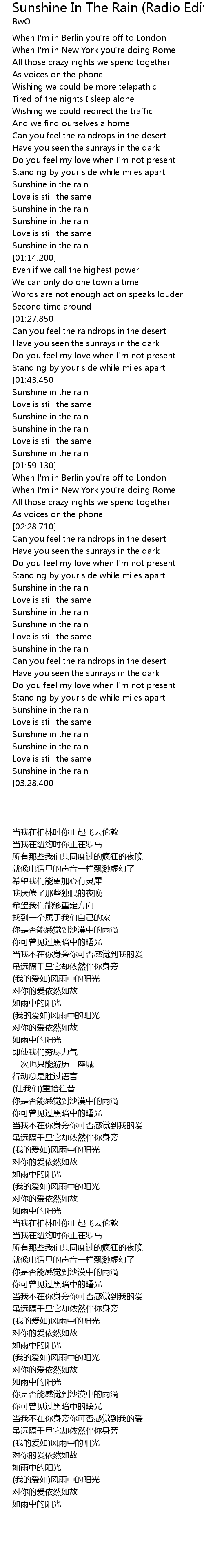 | 歌曲 | Sunshine In The Rain (Radio Edit) |