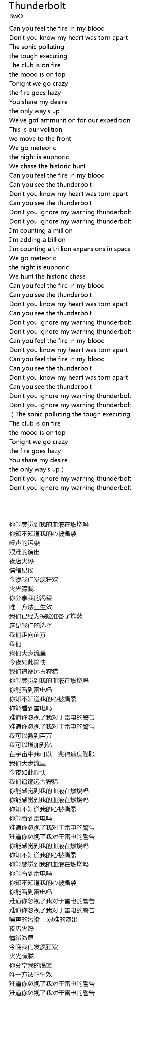 | 歌曲 | Thunderbolt |