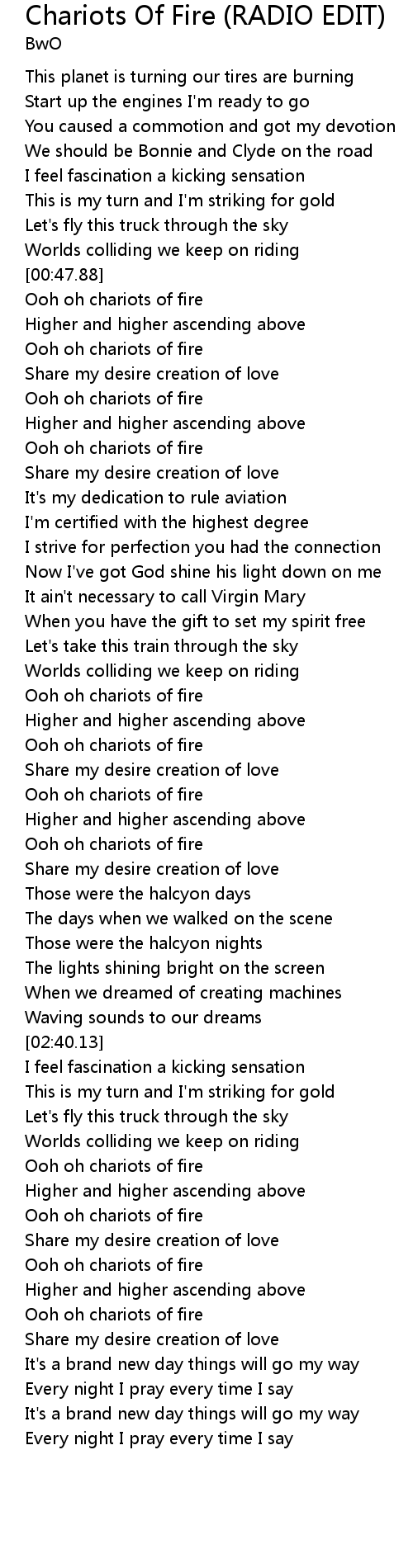 歌曲 Chariots Of Fire (RADIO EDIT)