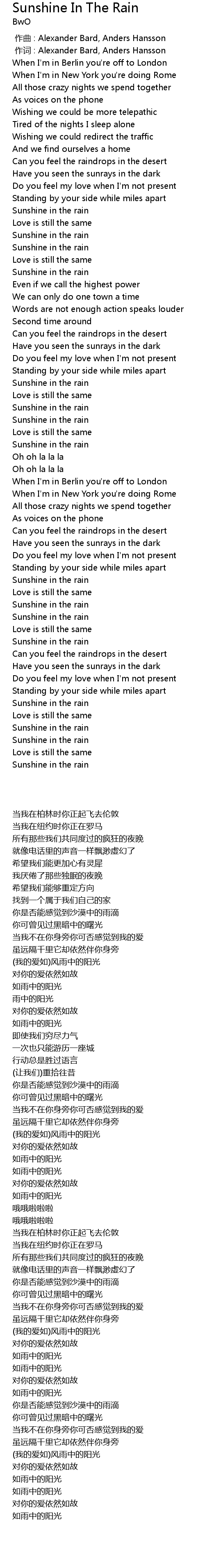 | [03:15.940] | (我的爱如)风雨中的阳光 |