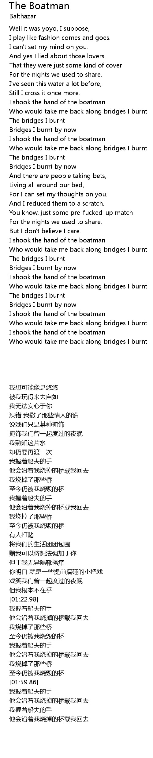 Who would take me back along bridges I burnt |