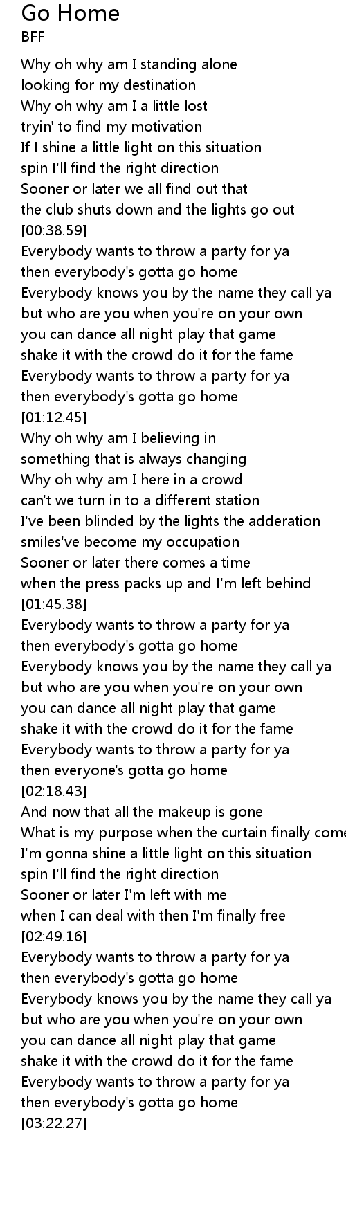 | [01:08.16] | then everybody's gotta go home |