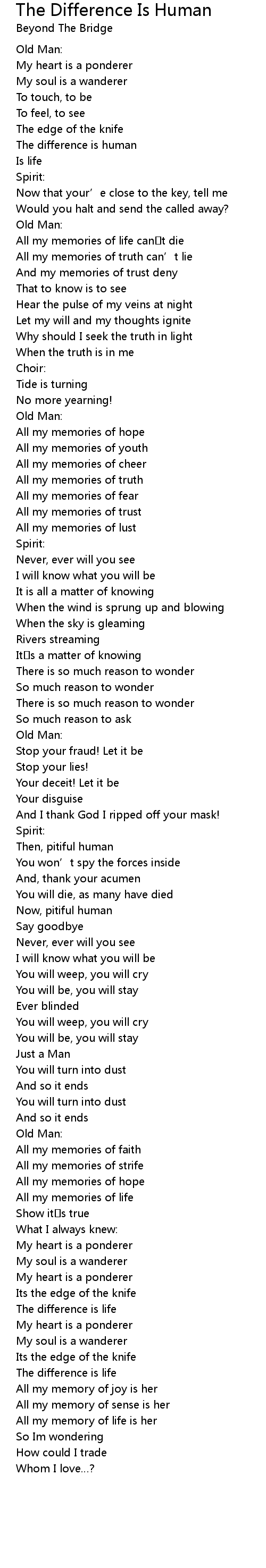 | 歌曲 | The Difference Is Human |