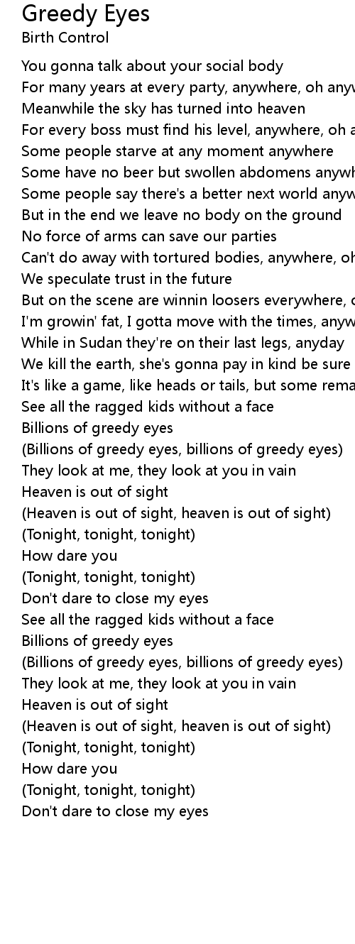 (Billions of greedy eyes, billions of greedy eyes) |