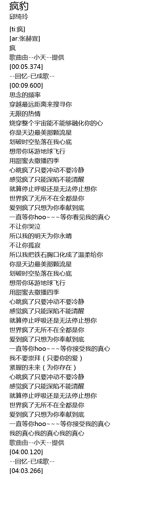 | [03:34.153] | 爱到疯了只想为你奉献到底 |