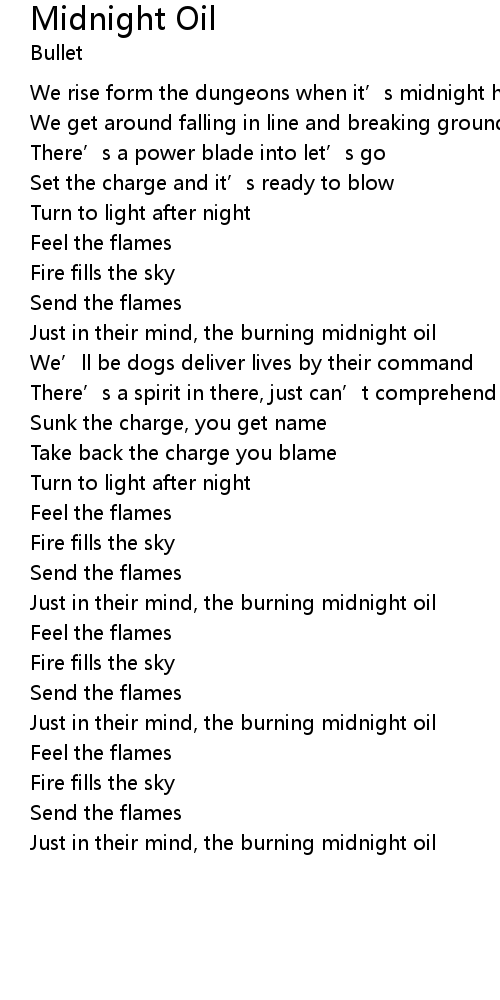 | Just in their mind, the burning midnight oil |