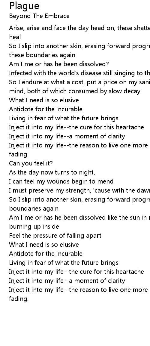 Inject it into my life--the reason to live one more day, 'cause my will is fading. |