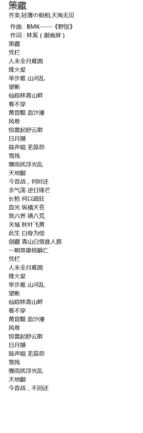 | [02:40.11] | 剑藏 青山白雪谁人葬 |