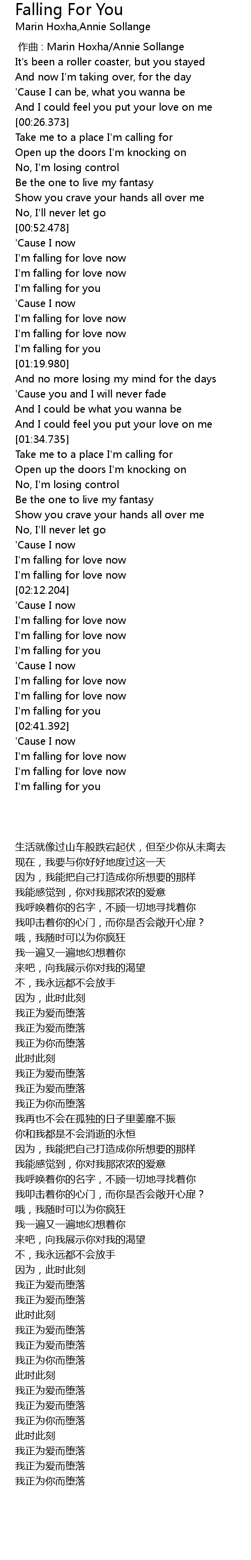 | [02:25.910] | I' m falling for you |
