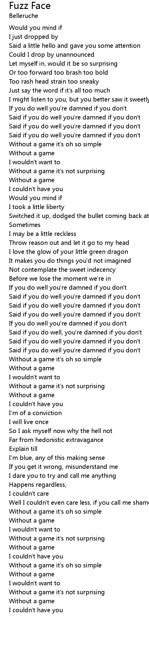 Well I couldn't even care less, if you call me shameless |
