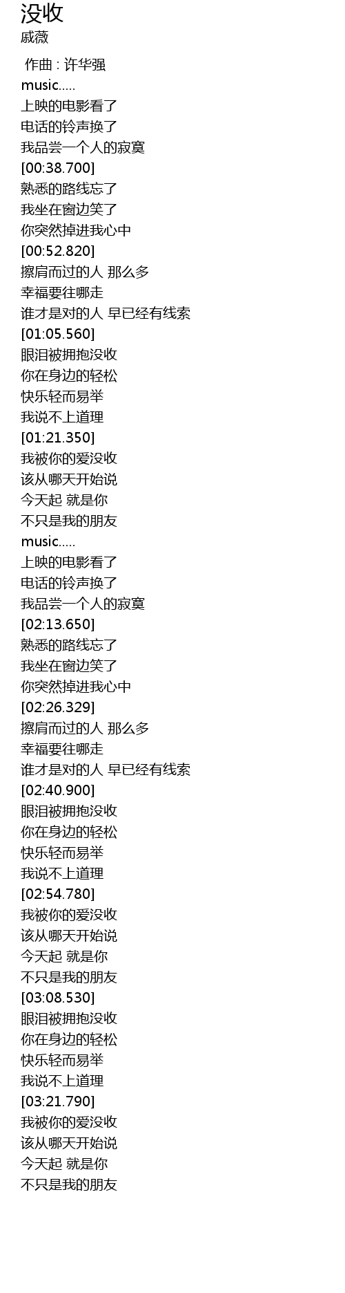 | [02:55.380] | wǒ bèi nǐ de ài mò shōu |