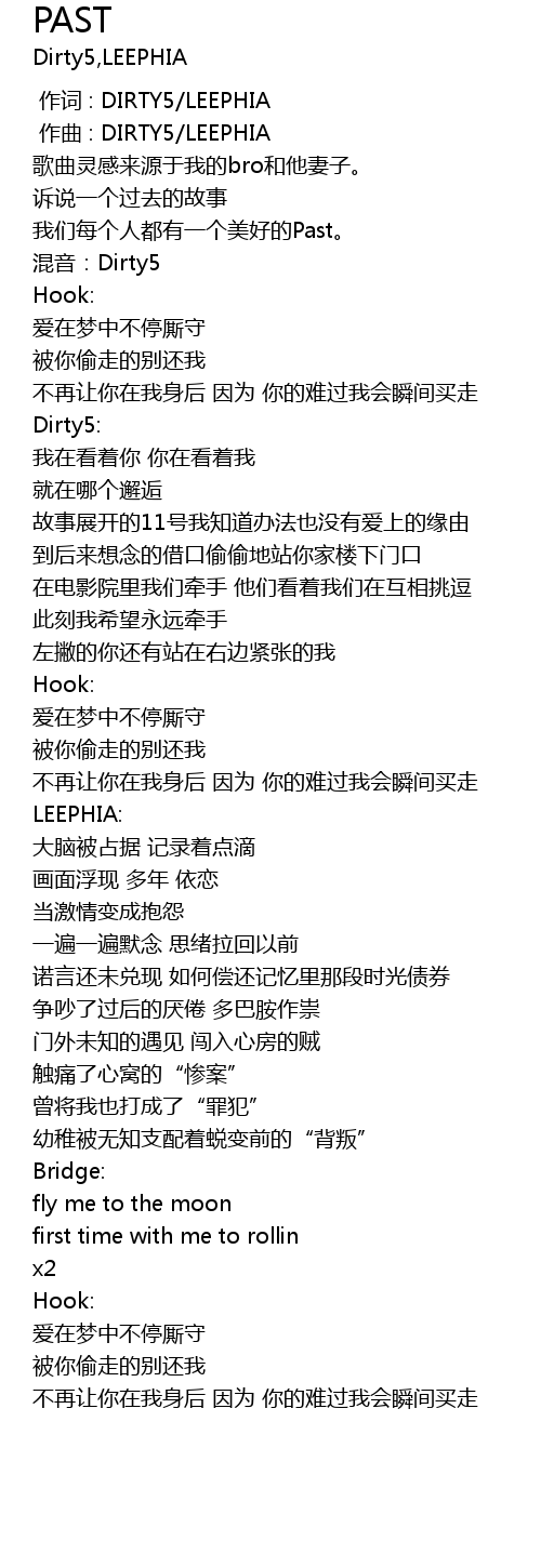 | [00:00.000] | 作词 : DIRTY5/LEEPHIA |