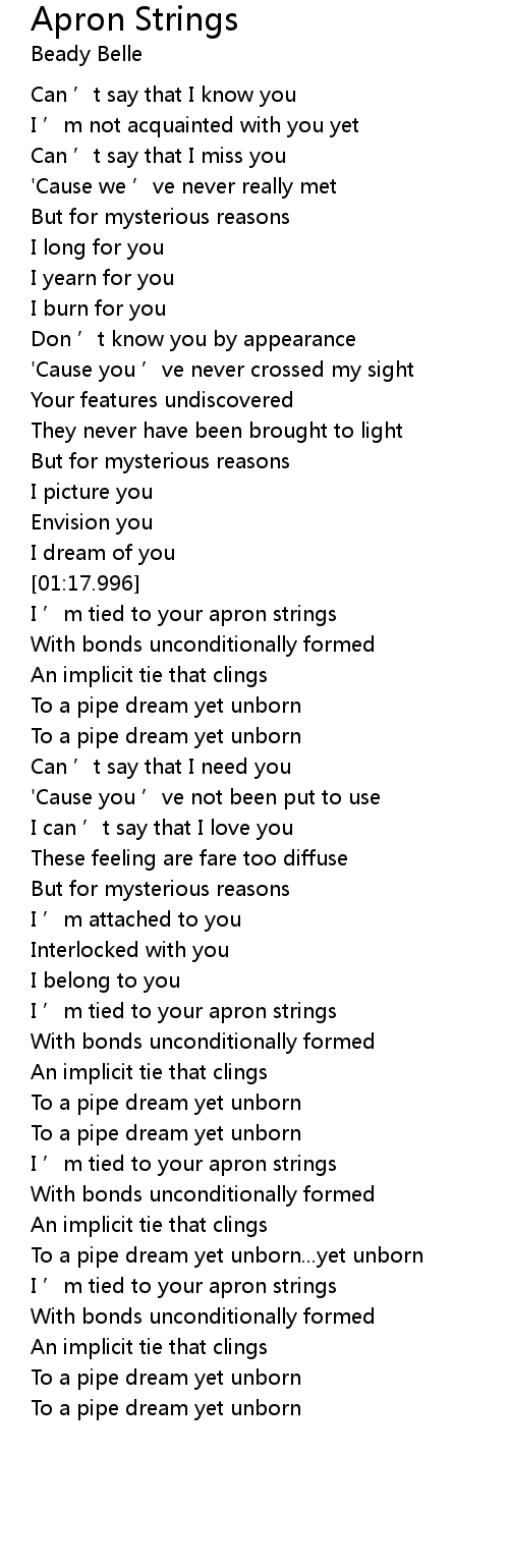 | [03:06.808] | To a pipe dream yet unborn...yet unborn |