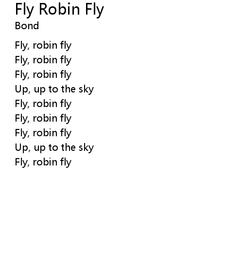 Fly Robin Fly 歌词