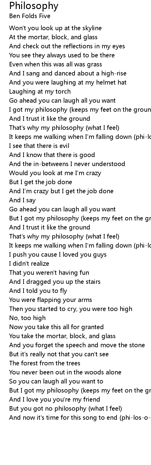 It keeps me walking when I'm falling down (phi-los-o-phy) |