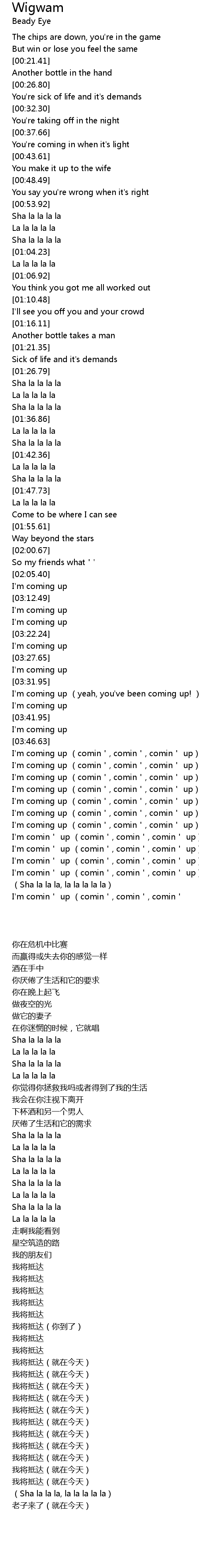 | 歌曲 | Wigwam |