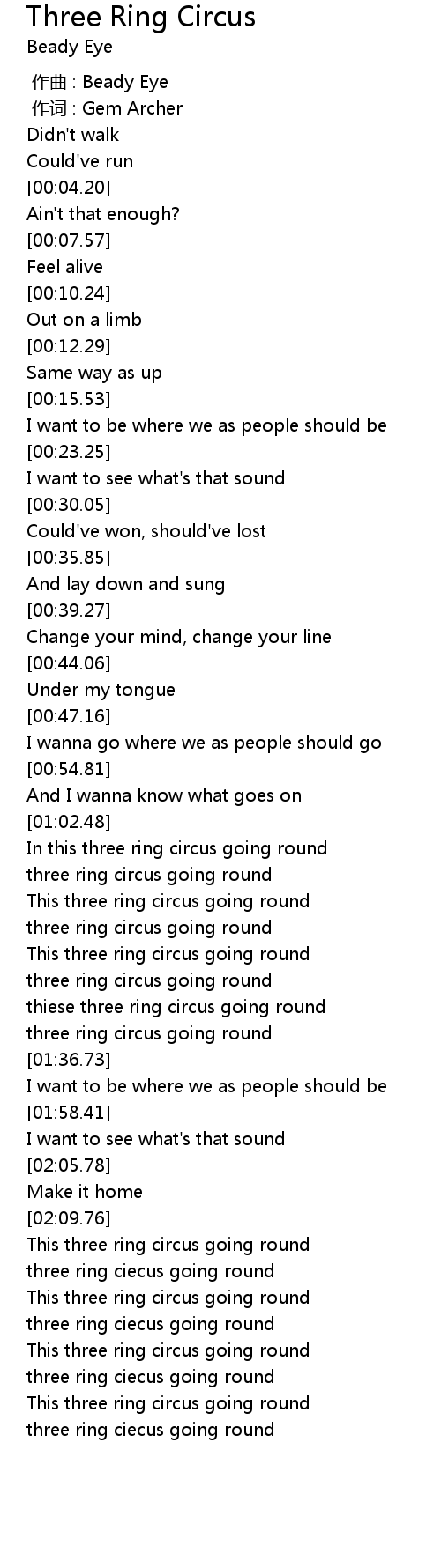 | [00:00.00] | zuò qǔ : Beady Eye |