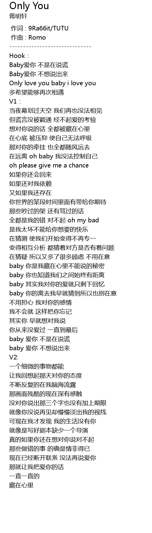 | [00:34.101] | Only love you baby i love you |
