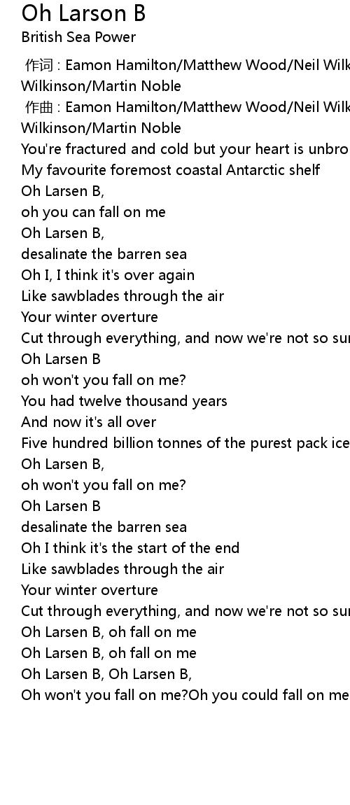 | [02:40.41] | Oh Larsen B, oh fall on me |