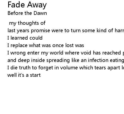 | [music: Tuomas Saukkonen, words:Tuomas Saukkonen/Panu Willman] my thoughts of last years promise were to turn some kind of harm was on its way | |
