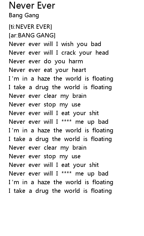 | [02:18.647] | Never ever will I **** me up bad |