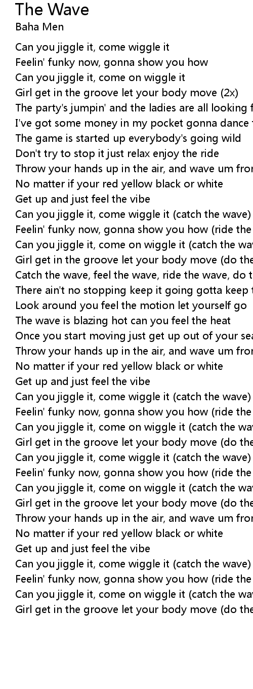 Catch the wave, feel the wave, ride the wave, do the wave |