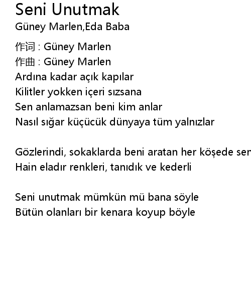 | 歌曲 | Seni Unutmak |