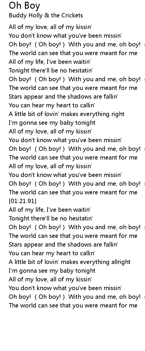 | [01:30.23] | Oh boy! (Oh boy!) With you and me, oh boy! (Oh boy!) |