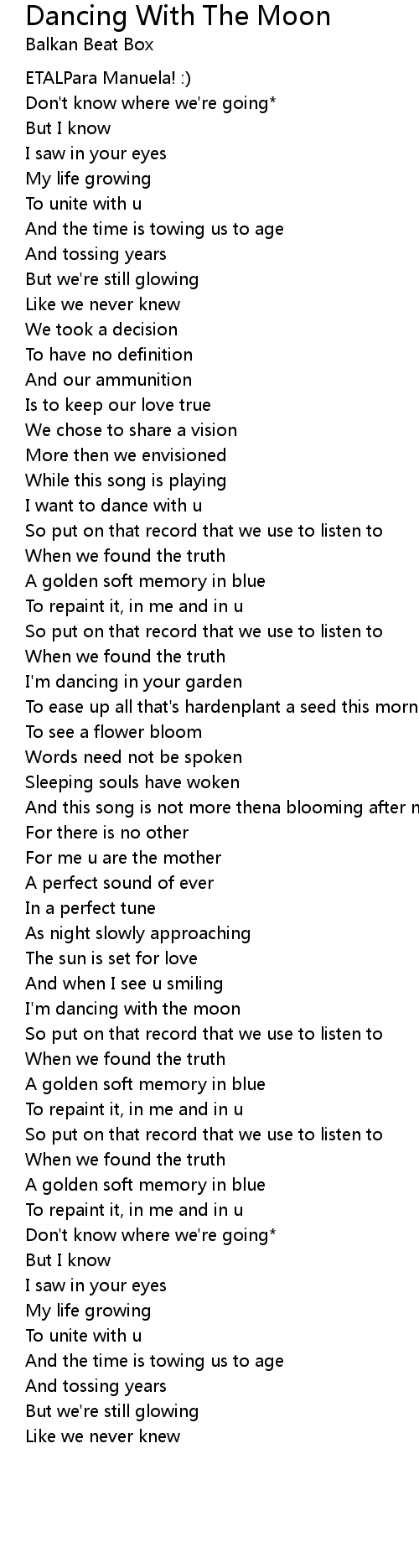| I' m dancing with the moon | |