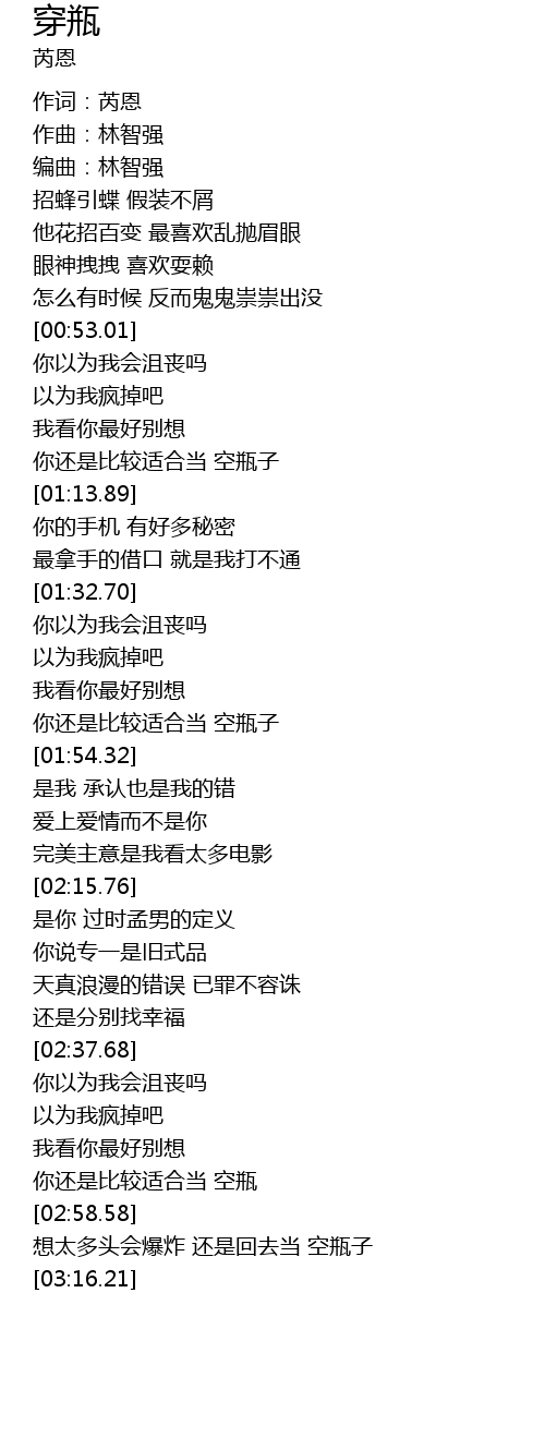 | [02:49.94] | 你还是比较适合当 空瓶 |