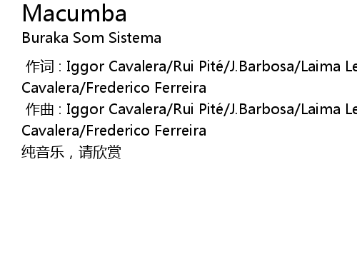 | [00:00.000] | zuò cí : Iggor Cavalera Rui Pité J. Barbosa Laima Leyton Cavalera Frederico Ferreira |