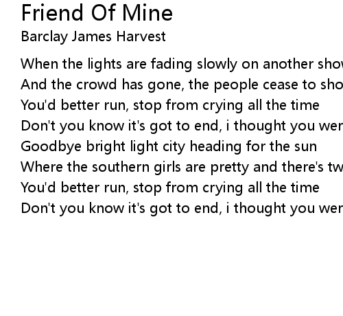 | Don't you know it's got to end, i thought you were a friend of mine | |
