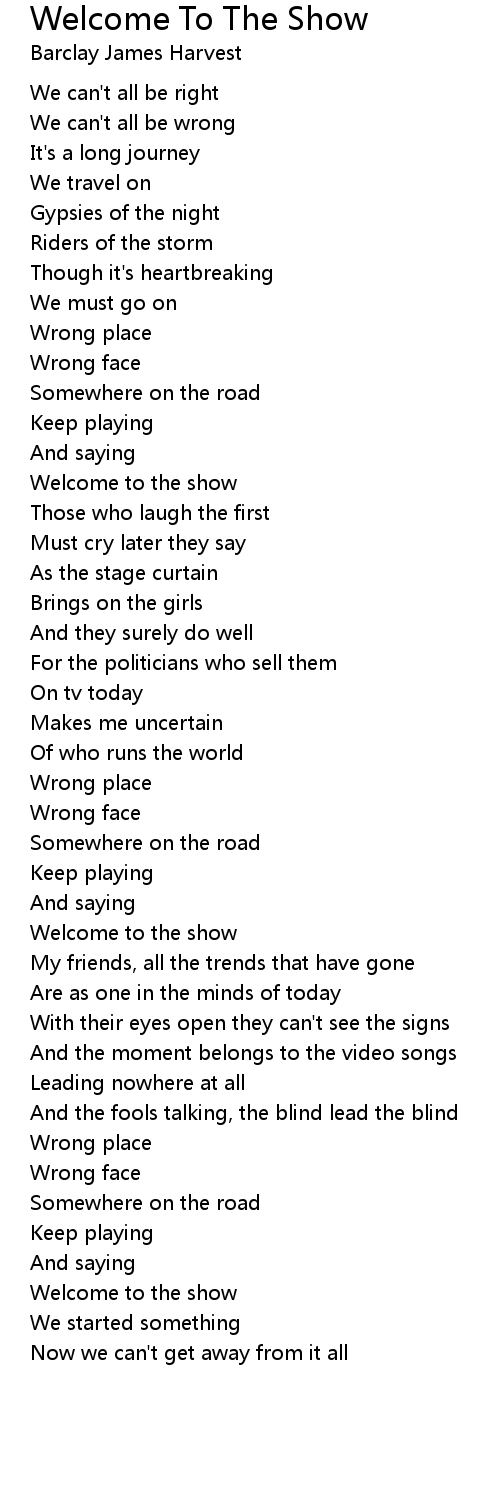 Welcome to the show |