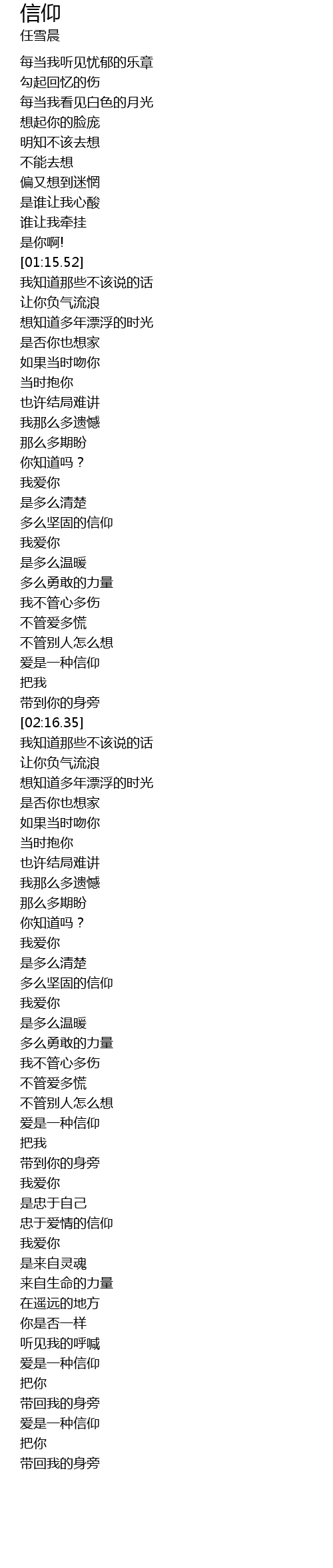 | [03:34.75] | ài shì yī zhǒng xìn yǎng |