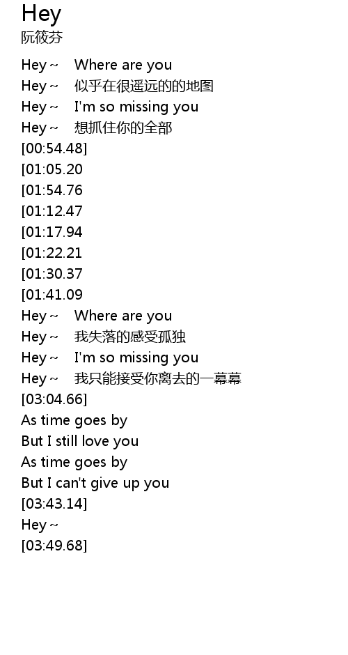 | [00:37.22] | Hey~ I'm so missing you |