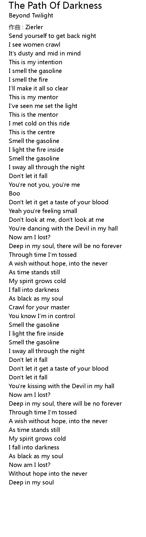 | 歌曲 | The Path Of Darkness |