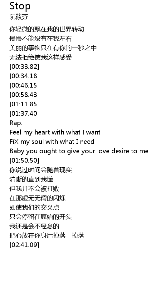 | [02:54.41][00:34.18] | Stop~冷淡 心酸 走 |