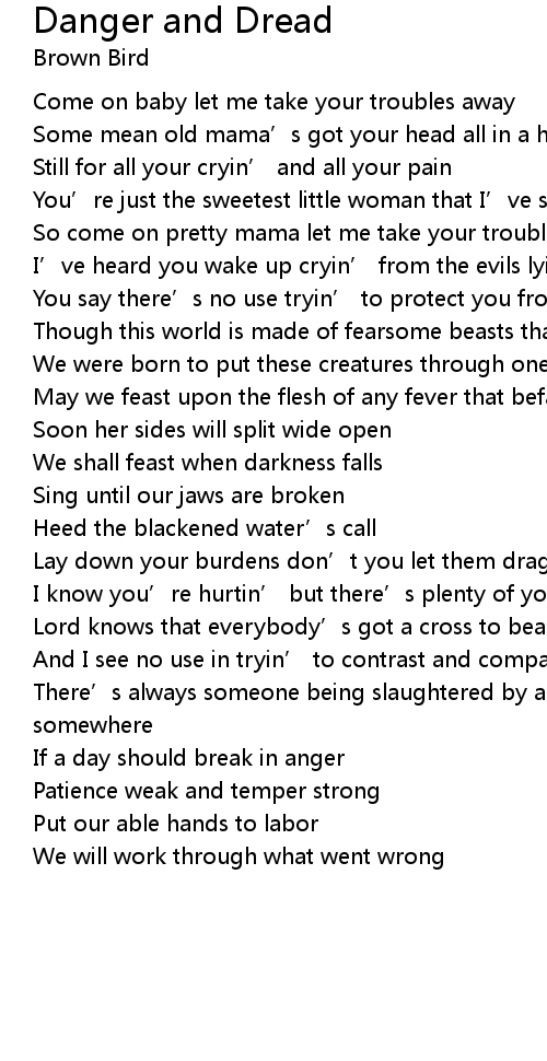 | You say there’s no use tryin’ to protect you from the danger and dread | |