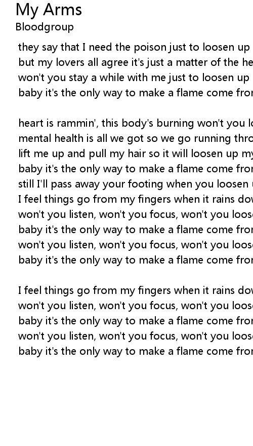 | won't you listen, won't you focus, won't you loosen up my arms | |