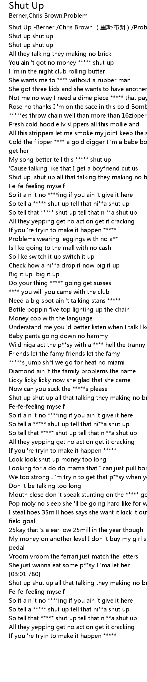 | [00:00.00] | Shut Up Berner Chris Brown li si bu lang Problem |