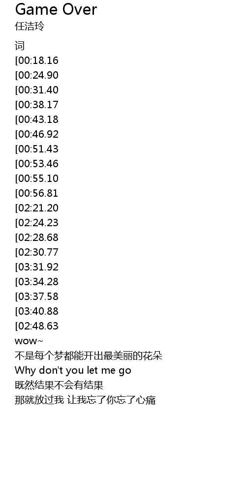 | [03:18.70][02:21.20][00:59.28] | Now game is over |