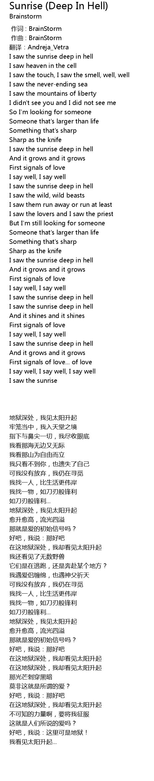 | [01:44.57] | I saw the sunrise deep in hell |